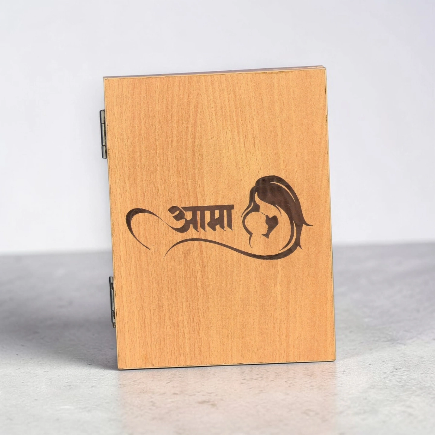 This 6×8 inch hinged wooden frame opens like a book — photo on one side, message on the other. You’ll receive a design preview before we engrave.