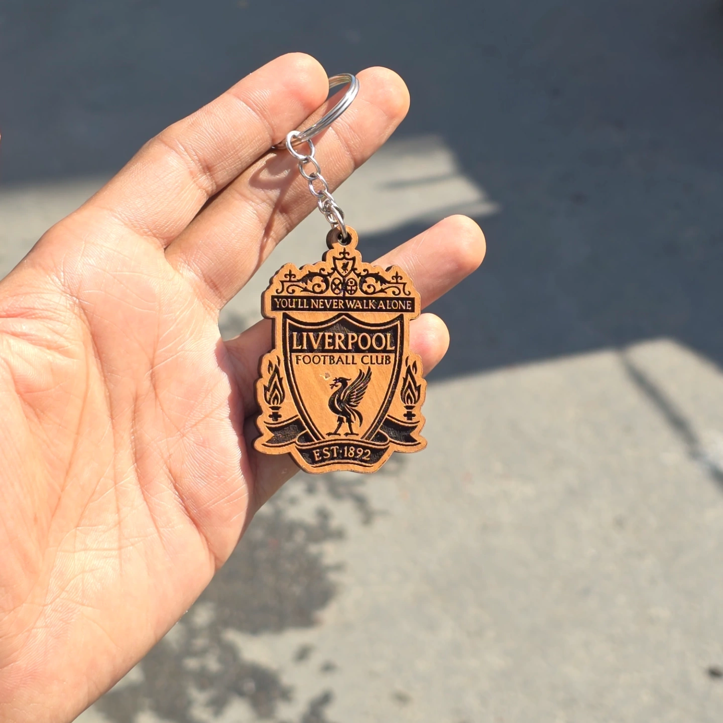 Personalized football club keyring engraved on natural Haldu wood. Add your team logo, name or number — perfect for fans, gifts and team souvenirs.