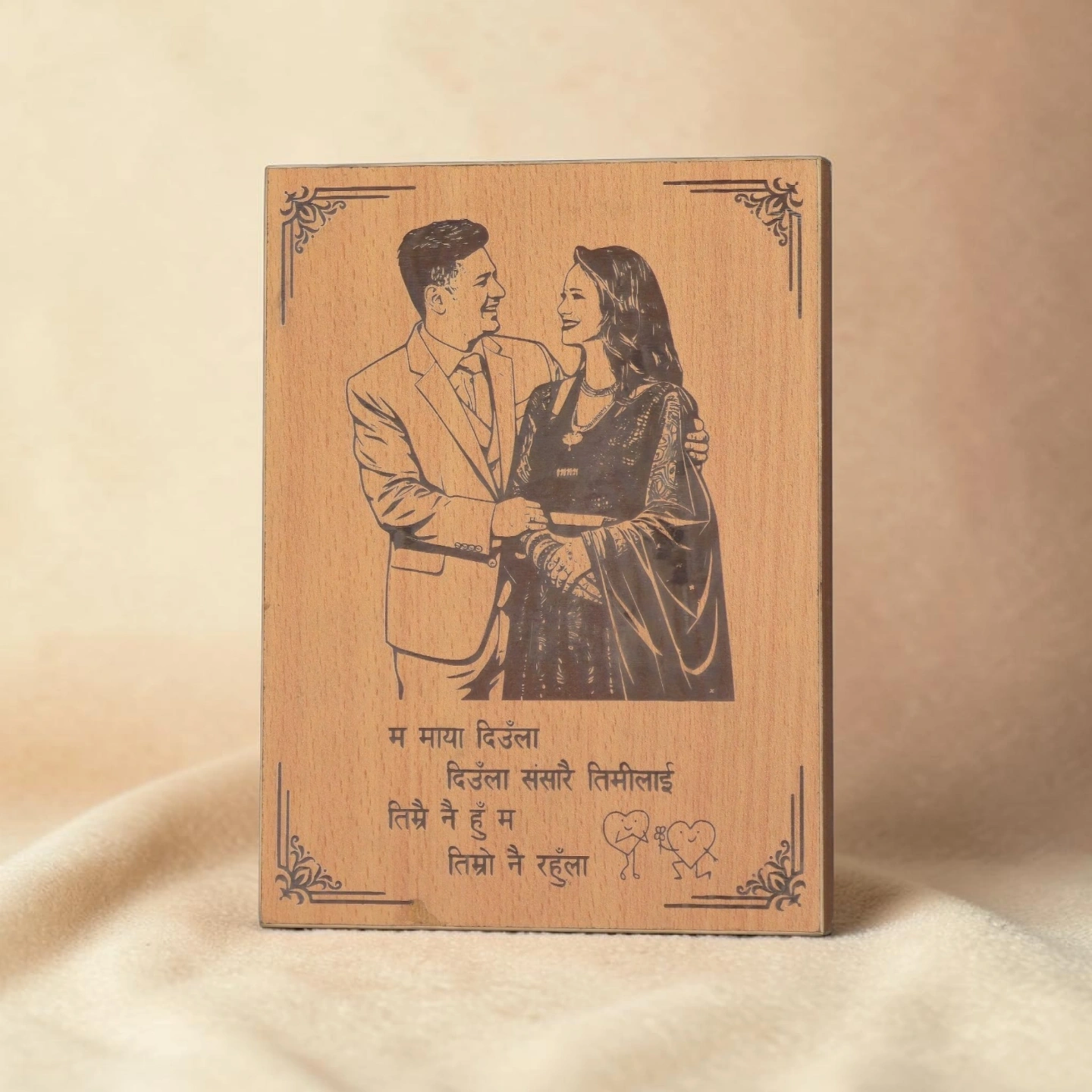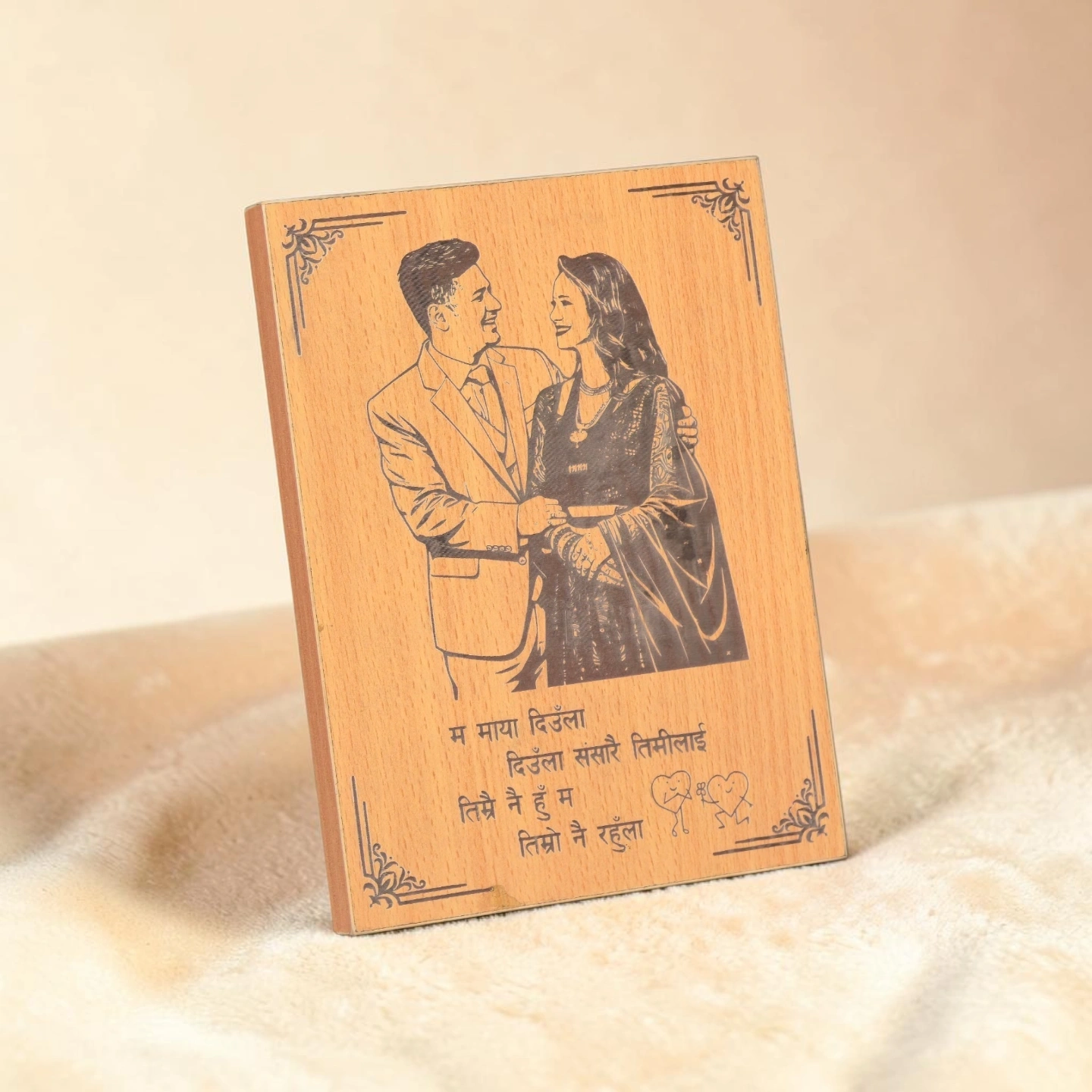 A premium engraved wooden plaque made from 16.5mm thick prelam MDF, featuring detailed portrait engraving and elegant text. Perfect as a meaningful decorative piece or thoughtful gift.